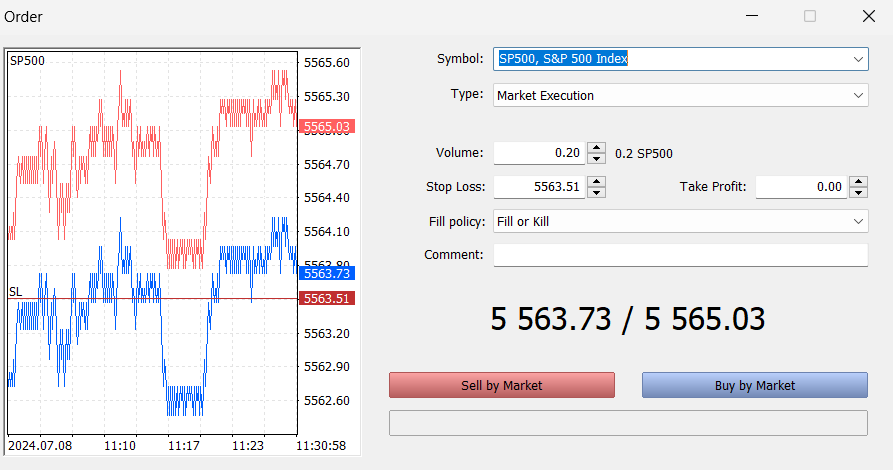 Based on the news of the medical breakthrough, you anticipate that the S&P 500 index will increase as investor confidence boosts the market. Using your zForex trading platform, you decide to go long on the S&P 500 index by placing a buy order.
