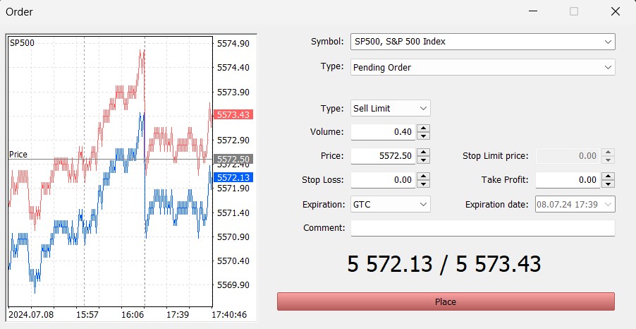 In a different scenario, suppose that despite the positive news, you anticipate that the market has overreacted and expect a short-term correction where the S&P 500 index will drop. You decide to go short on the S&P 500 index by placing a sell order. For example, you sell 10 contracts of the S&P 500 CFD at a current price of 4,500.