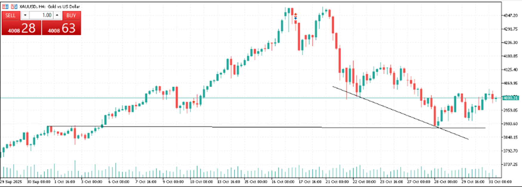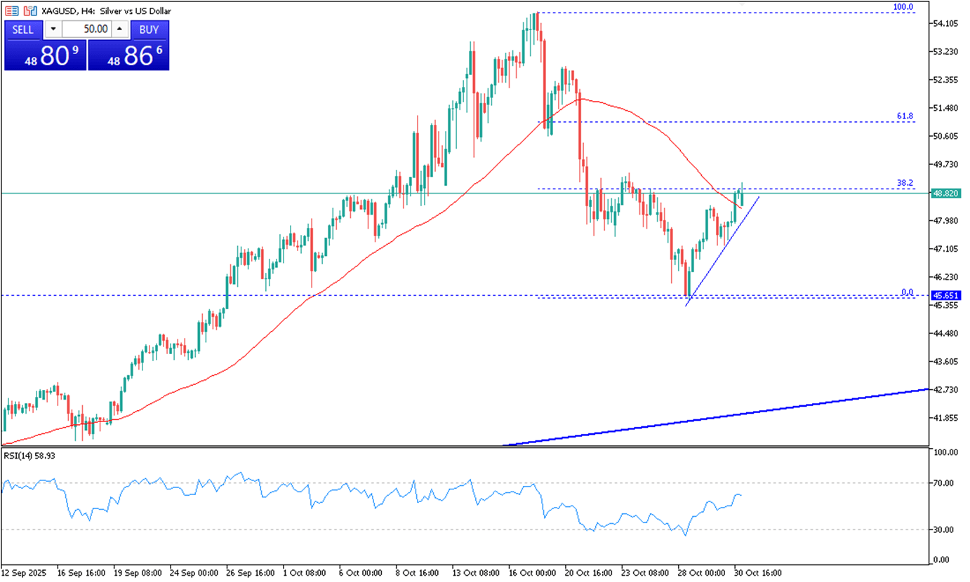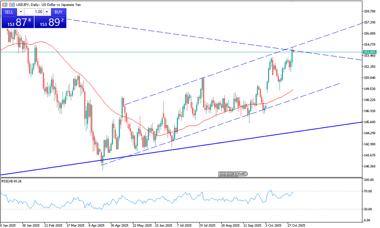 ارتفع الين بشكل طفيف بفضل بيانات التضخم والتجزئة الإيجابية في طوكيو، في حين انخفض الجنيه الإسترليني إلى ما دون 1.32 دولار وسط تجدد المخاوف المالية. وانخفض الذهب مع تحسن الرغبة في المخاطرة، على الرغم من أن حالة عدم اليقين الناجمة عن الإغلاق المطول للحكومة الأمريكية قد وفرت بعض الدعم. وظلت الفضة ثابتة بالقرب من 49 دولارًا، محافظًا على زخمها على الرغم من تراجع توقعات خفض أسعار الفائدة من قبل بنك الاحتياطي الفيدرالي.