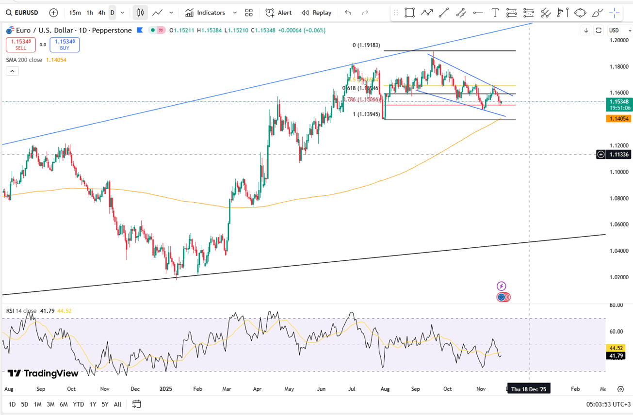 ومن الناحية الفنية، يمثل مستوى 1.1470 مستوى الدعم الرئيسي، في حين تظهر المقاومة عند مستوى 1.1625.
