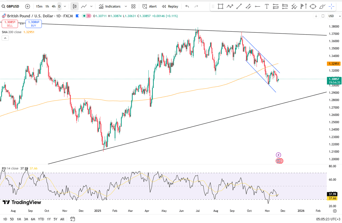 من الناحية الفنية، يقع الدعم بالقرب من 1.3020، مع مقاومة حول 1.3190.