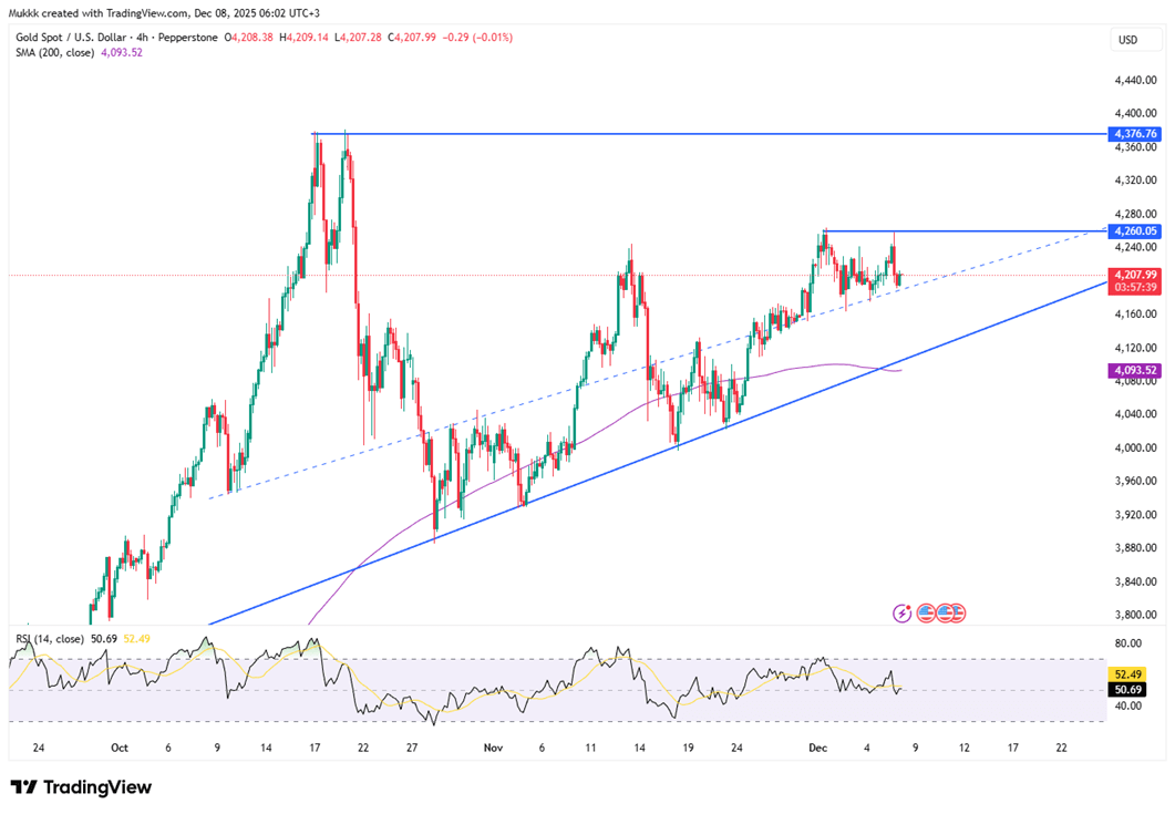 يجد الذهب دعماً بالقرب من 4175، بينما تظهر المقاومة حول 4260.