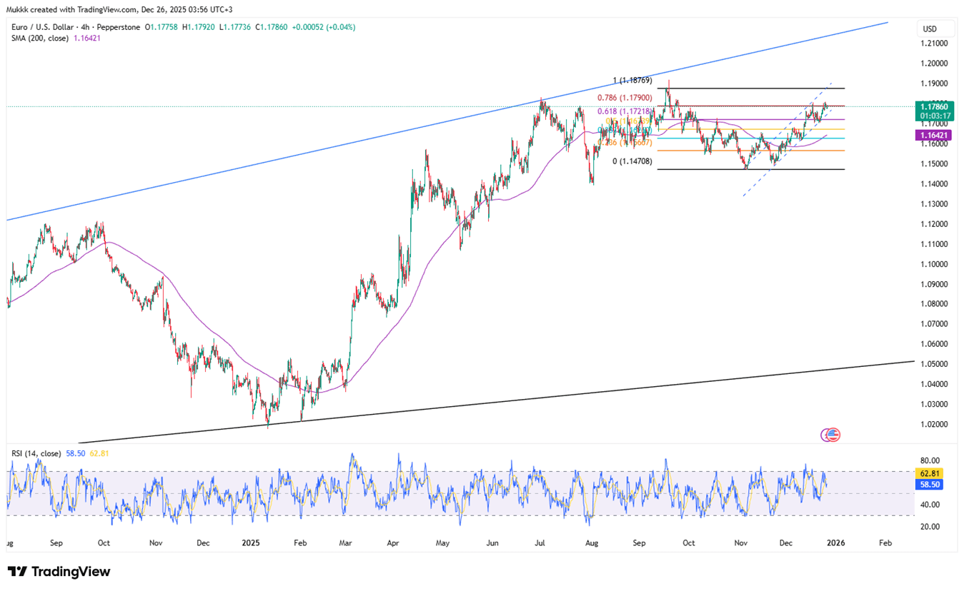 من الناحية الفنية، يمثل 1.1700 مستوى الدعم الرئيسي، بينما يوجد مستوى المقاومة عند 1.1800.