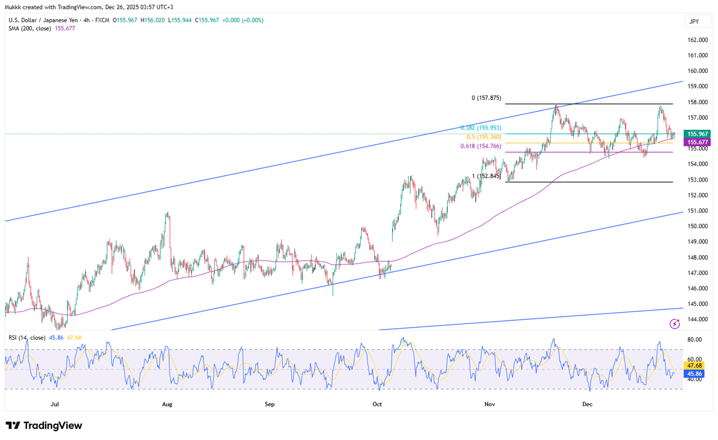 من الناحية الفنية، تقع المقاومة بالقرب من 156.50، بينما يظل الدعم قوياً عند 154.60.