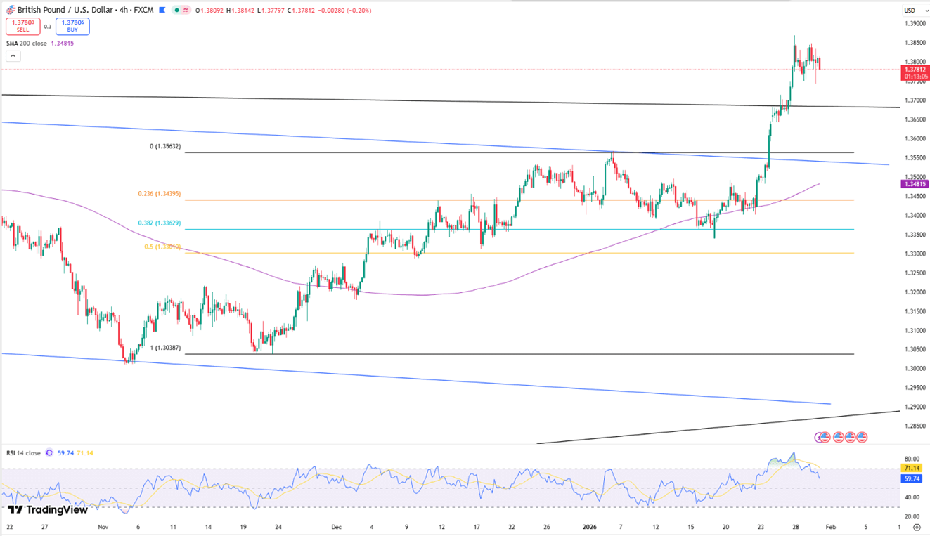من الناحية الفنية، يقع الدعم بالقرب من 1.3770، مع مقاومة حول 1.3710.