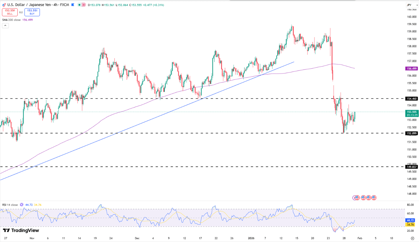 من الناحية الفنية، تقع المقاومة بالقرب من 153.90، بينما الدعم ثابت عند 153.20.