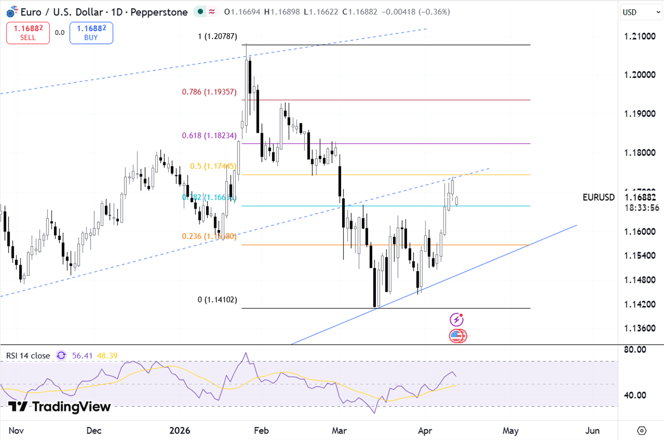 التفاصيل وقف إطلاق النار يدفع اليورو والمعادن وشهية المخاطرة إلى الارتفاع (04.08.2026)تحولت الأسواق إلى نمط الميل إلى المخاطرة، حيث ساهمت التوترات الجيوسياسية المتراجعة في دعم ارتفاعات الأصول على نطاق واسع.
