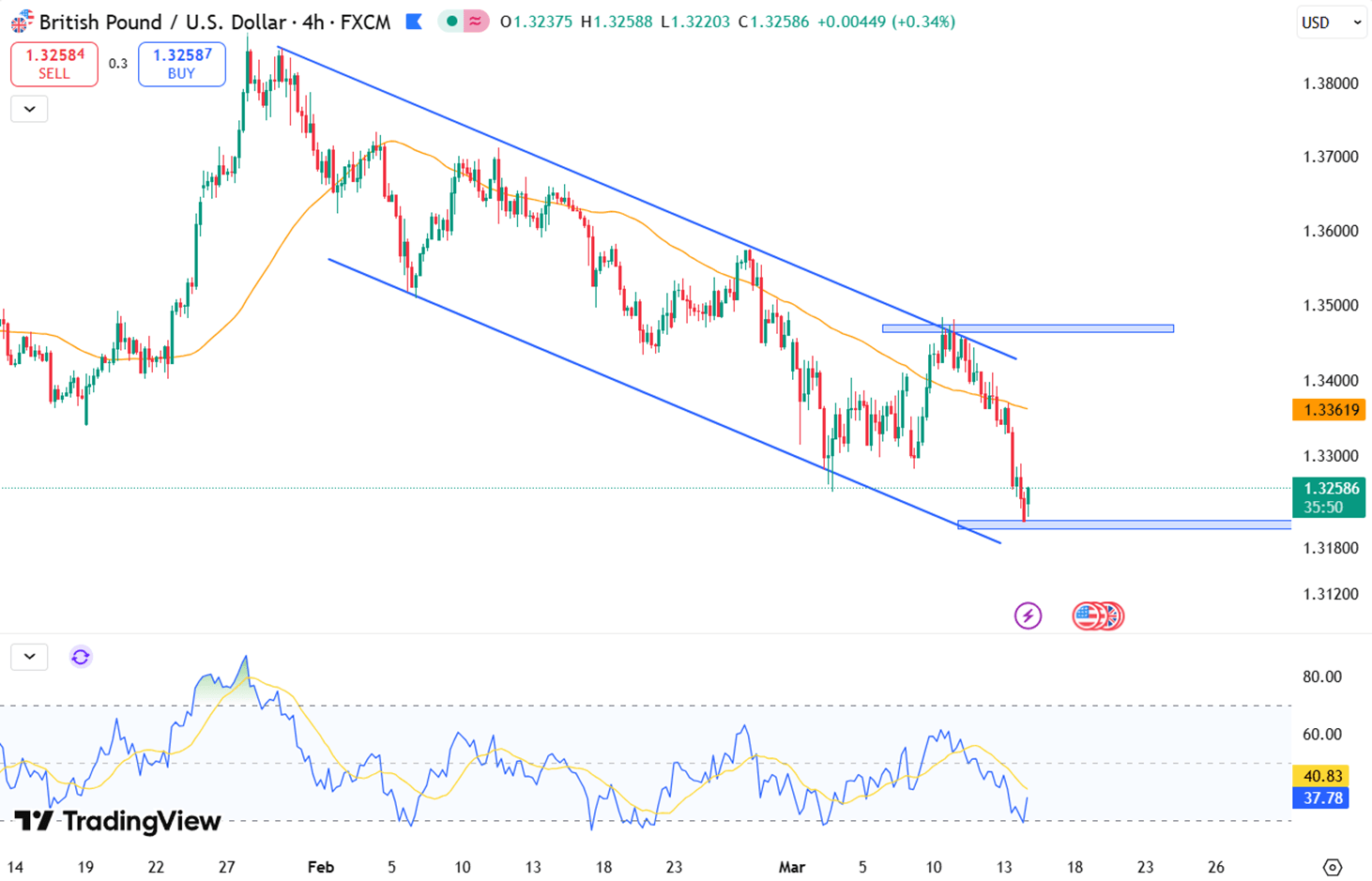 من الناحية الفنية، يقع مستوى الدعم بالقرب من 1.3220، مع وجود مستوى مقاومة عند حوالي 1.3330.