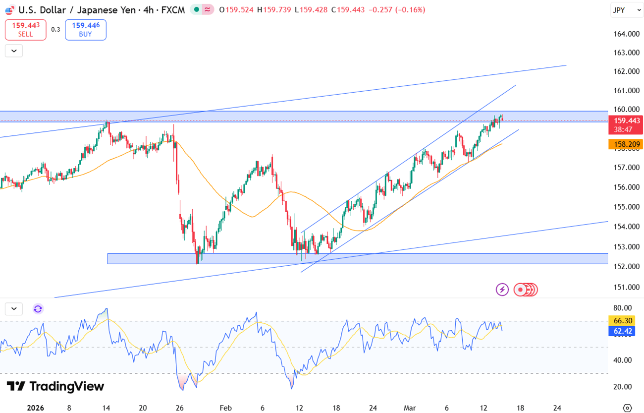 ارتفع سعر صرف الين الياباني يوم الاثنين متجاوزًا مستوى 159.5 مقابل الدولار، في انتعاش له بعد أن سادت مخاوف في الأسواق من أن يؤدي انخفاضه إلى ما دون مستوى 160 إلى تدخل الحكومة. أكدت وزيرة المالية ساتسوكي كاتاياما أن السلطات مستعدة لاتخاذ إجراءات حاسمة لمواجهة التقلبات المفرطة. وكان الين قد عانى في السابق من أربعة أسابيع من الخسائر، مدفوعًا بالصراعات في الشرق الأوسط وارتفاع أسعار النفط. وفي الوقت الذي تتزايد فيه التكهنات بشأن تشكيل تحالف بقيادة الولايات المتحدة لمرافقة السفن عبر مضيق هرمز، حذر المسؤولون اليابانيون من أن العتبة القانونية والسياسية لنشر سفن حربية في المنطقة لا تزال” مرتفعة للغاية“.