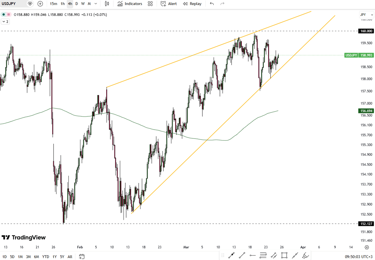 من الناحية الفنية، تقع المقاومة بالقرب من 159.20، في حين أن الدعم ثابت عند 158.20.