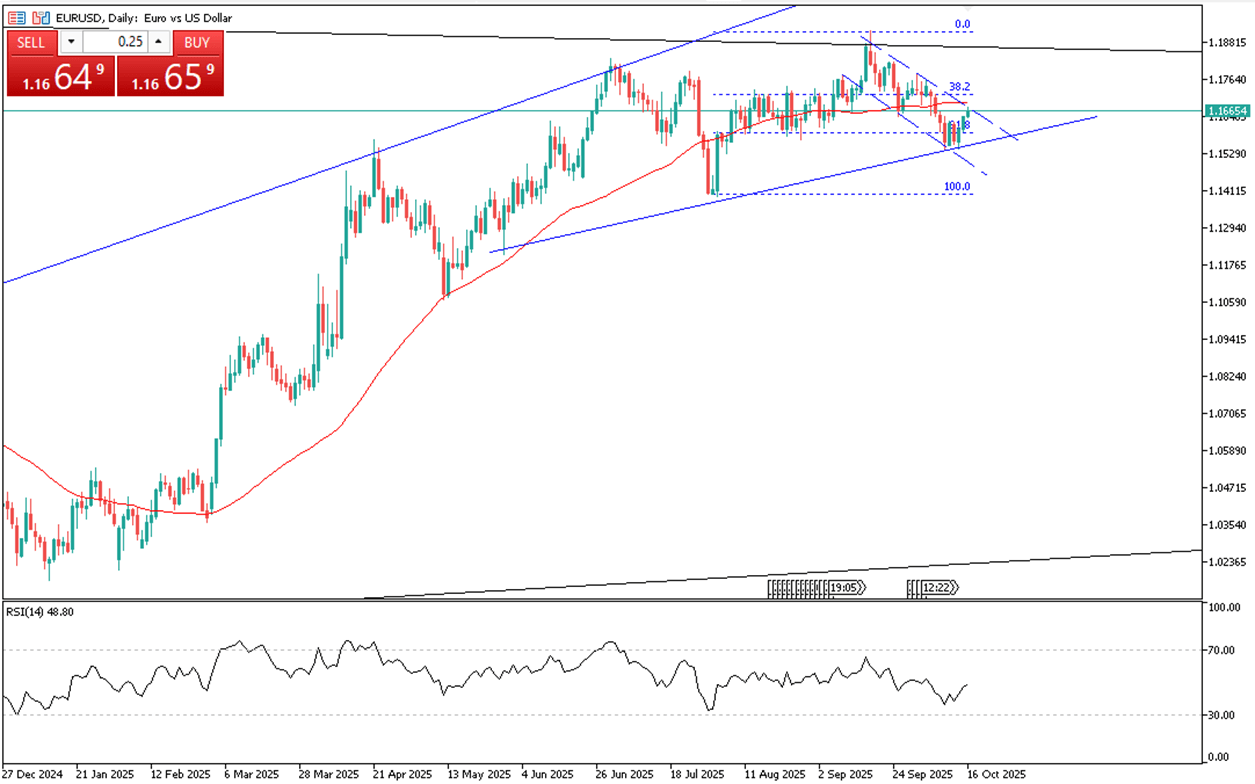 ارتفع اليورو فوق 1.16 دولار يوم الخميس، مرتفعاً من أدنى مستوى له في شهرين مع تراجع التوترات السياسية الفرنسية وارتفاع توقعات خفض أسعار الفائدة الأمريكية، مما أدى إلى تحسن المعنويات. اقترح رئيس الوزراء الفرنسي ليكورنو تأجيل إصلاحات المعاشات التقاعدية إلى عام 2027 للحصول على دعم الاشتراكيين وتجنب تصويت على سحب الثقة. وفي الوقت نفسه، عززت تعليقات رئيس بنك الاحتياطي الفيدرالي باول بشأن تراجع سوق العمل التوقعات بخفض أسعار الفائدة مرة أخرى، في حين زادت التوترات الجديدة بين الولايات المتحدة والصين بشأن الرسوم الجمركية ورسوم الموانئ من الضغوط.