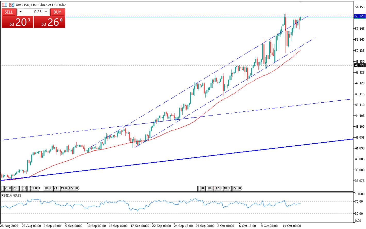 ارتفع سعر الفضة يوم الخميس إلى ما يزيد عن 53 دولارًا للأونصة، قريبًا من مستويات قياسية، حيث أدى نقص العرض العالمي إلى ارتفاع الأسعار. وقد ارتفع سعر المعدن بنسبة 37٪ في 44 يومًا فقط منذ خطاب رئيس مجلس الاحتياطي الفيدرالي باول في جاكسون هول. بعد أن تجاوزت الفضة ذروتها في عام 2011 عند 49.81 دولارًا، لا تزال مدعومة بالطلب الصناعي القوي على الألواح الشمسية والسيارات الكهربائية والإلكترونيات، إلى جانب عمليات الشراء المضاربة. يستمر نقص العرض في زيادة التقلبات التي لم نشهدها منذ طفرة الفضة في الثمانينيات.