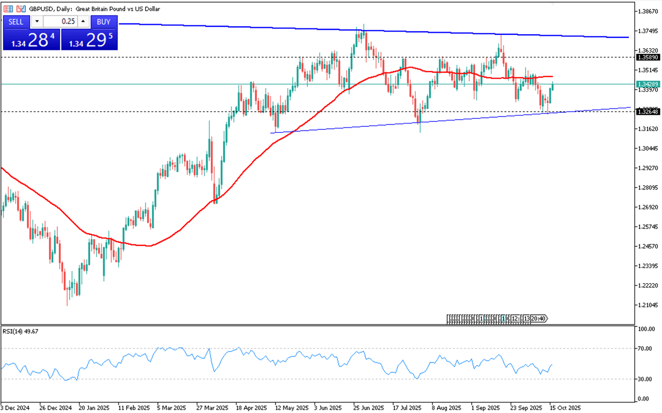 من الناحية الفنية، يقع الدعم حول 1.3360، والمقاومة عند 1.3460.