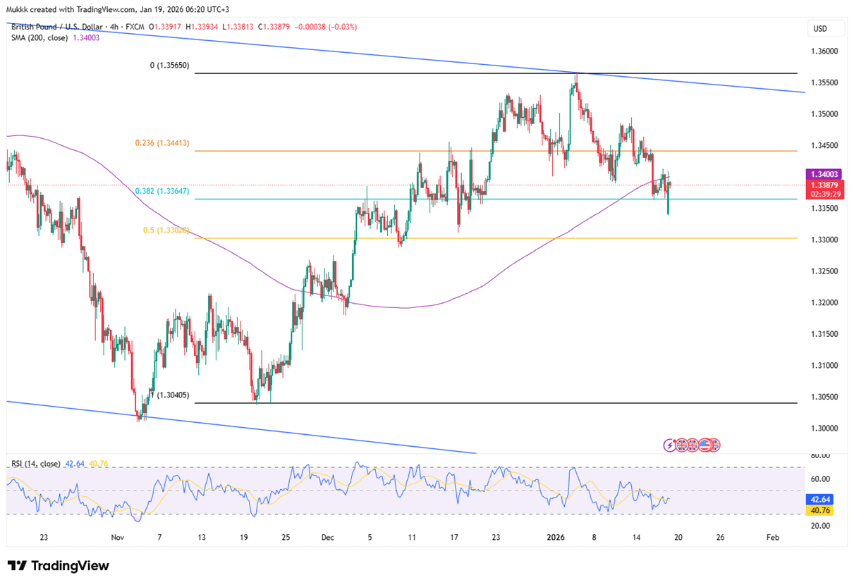 من الناحية الفنية، يقع الدعم بالقرب من 1.3340، مع مقاومة حول 1.3420.