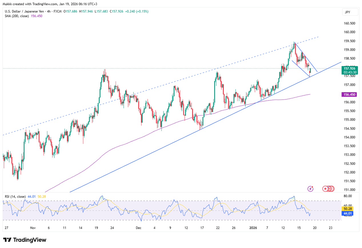 من الناحية الفنية، تقع المقاومة بالقرب من 158.20، بينما يظل الدعم قوياً عند 157.40.