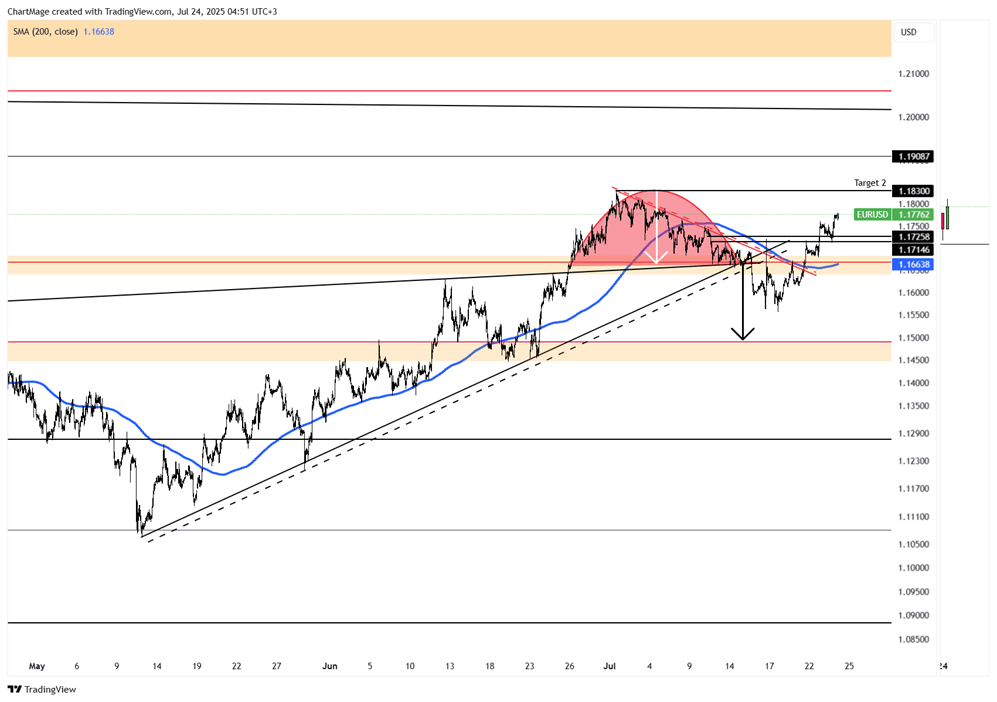 ارتفع اليورو إلى 1.1780 دولارًا أمريكيًا مستفيدًا من توقعات التوصل إلى اتفاق بين الولايات المتحدة والاتحاد الأوروبي يحد من الرسوم الجمركية إلى 15%.