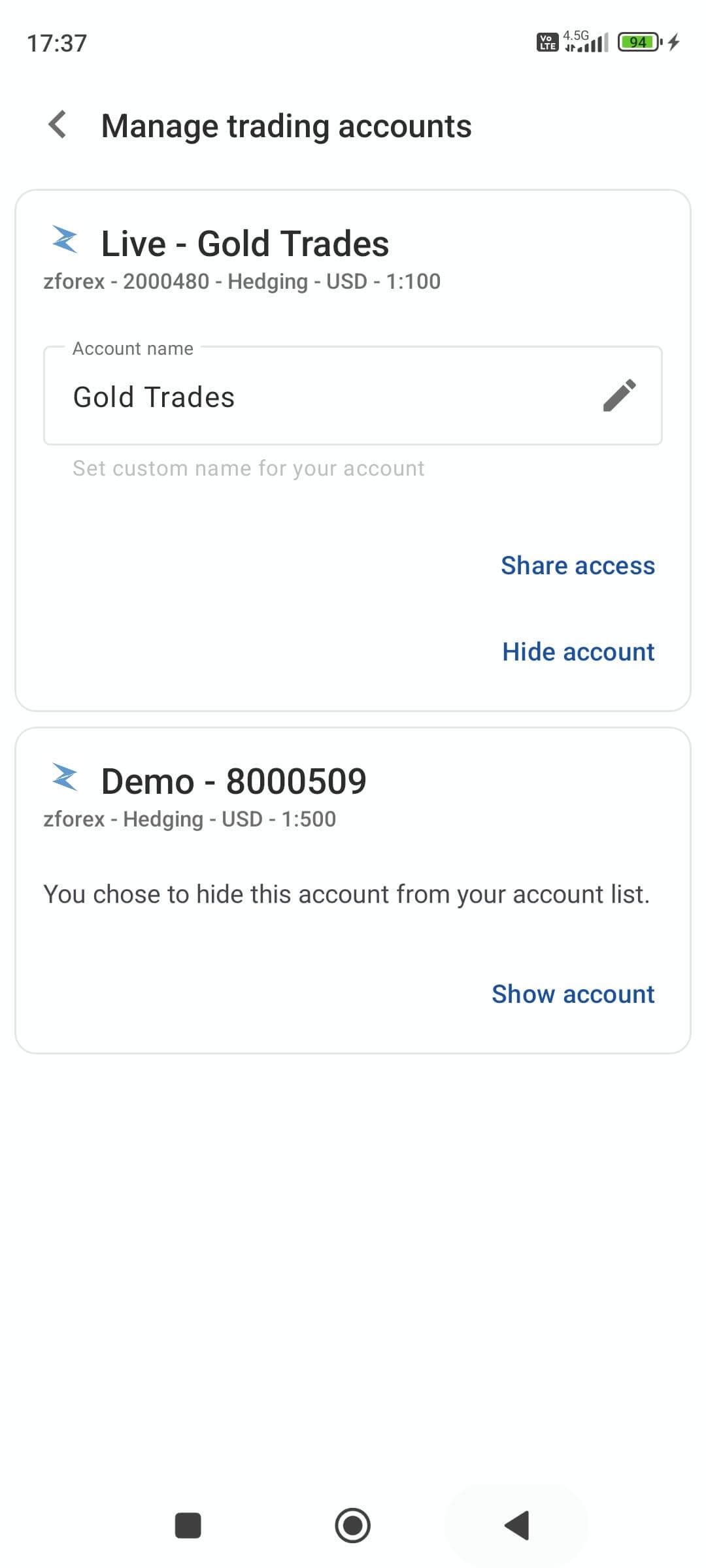 After this, the invited user will see your account under their shared accounts list and can trade on it.