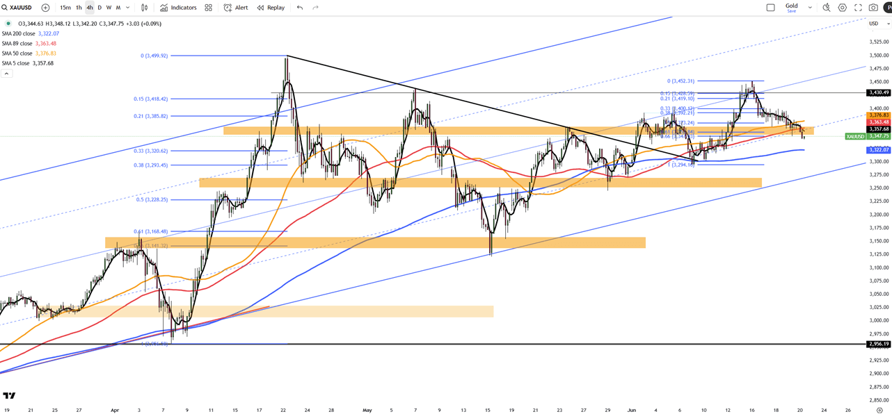 El oro cayó por debajo de los 3360 dólares la onza, alcanzando su mínimo en una semana y encaminándose hacia su primera caída semanal en tres semanas. Los inversores recortaron sus posiciones para cubrir pérdidas en otros mercados, con el sentimiento de riesgo sacudido por la intensificación del conflicto entre Israel e Irán. Según informes, los ataques israelíes tuvieron como objetivo lugares clave en Teherán tras un ataque con misiles iraní contra un hospital israelí.