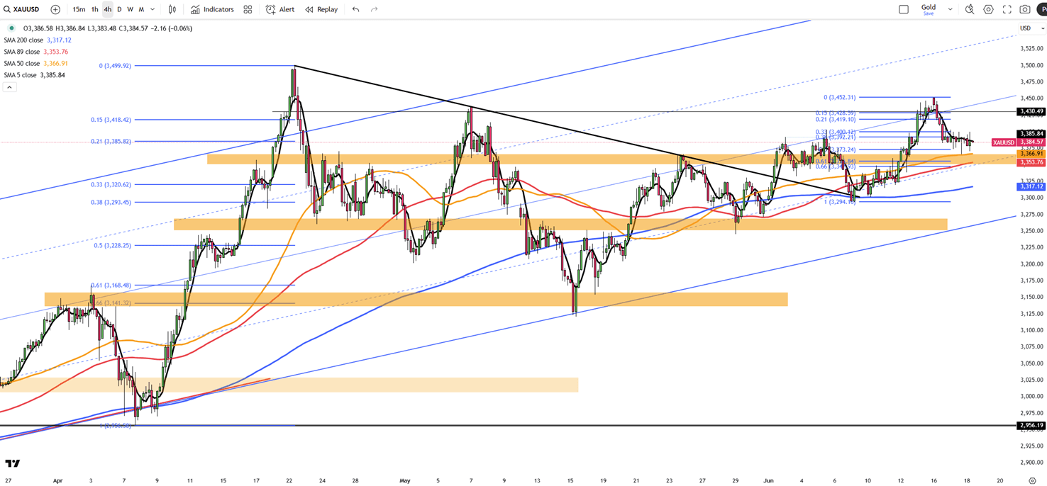 El oro se recuperó de las pérdidas iniciales del miércoles y volvió a situarse en torno a los 3390 dólares, mientras el conflicto entre Irán e Israel entraba en su sexto día. Israel confirmó los ataques cerca de Teherán e informó del lanzamiento de misiles desde Irán, mientras que la reunión de seguridad nacional del presidente Trump alimentó las especulaciones sobre una posible intervención de Estados Unidos. Los inversores también se centraron en la reunión de la Reserva Federal, en la que no se esperan cambios en los tipos de interés, pero sí se prestará atención a las orientaciones en medio de las tensiones comerciales y la incertidumbre mundial.