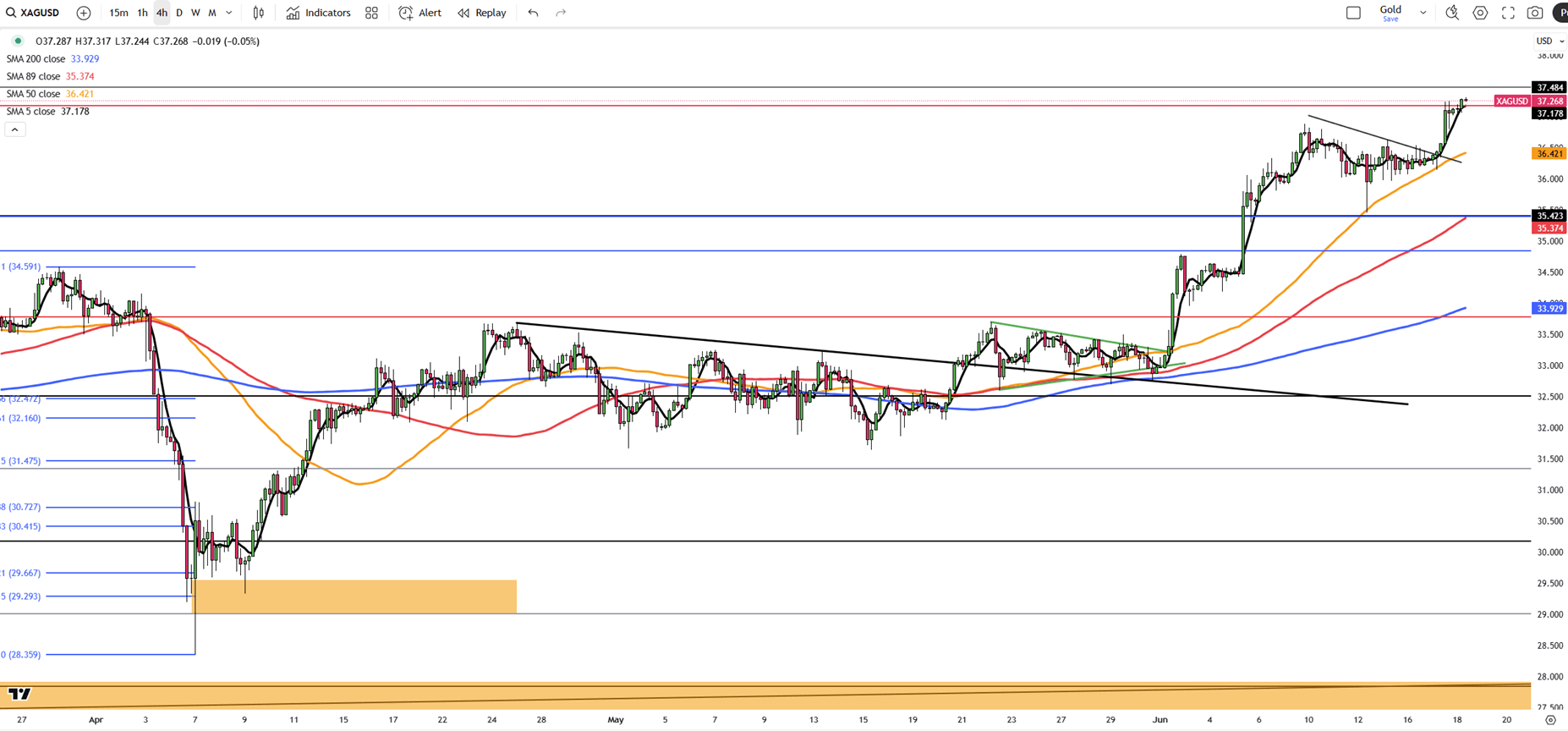 El XAG/USD subió un 0,3 % hasta los 37,23 dólares el miércoles, aunque las ganancias se vieron limitadas por la fortaleza del dólar estadounidense, ya que los inversores se refugiaron en activos seguros ante la escalada de las tensiones geopolíticas y la cautela ante la decisión de la Reserva Federal. La plata siguió siendo un valor refugio, pero la fortaleza del dólar la hizo menos atractiva para los compradores no estadounidenses. Los mercados esperan ahora las declaraciones del presidente de la Fed, Jerome Powell, en busca de pistas sobre la política futura y la dirección a corto plazo de la plata.