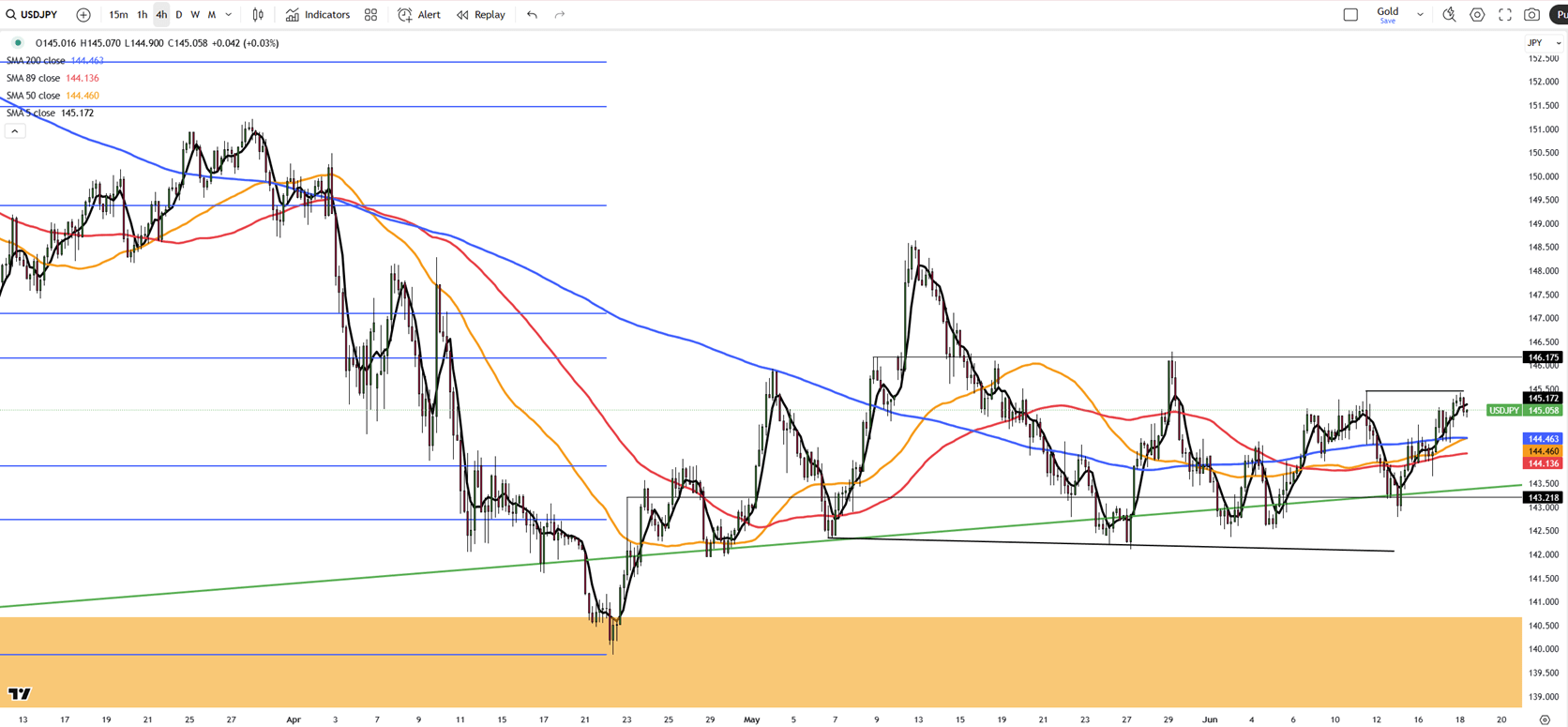 La resistencia se sitúa en 145,30, mientras que el soporte se encuentra cerca de 142,50.