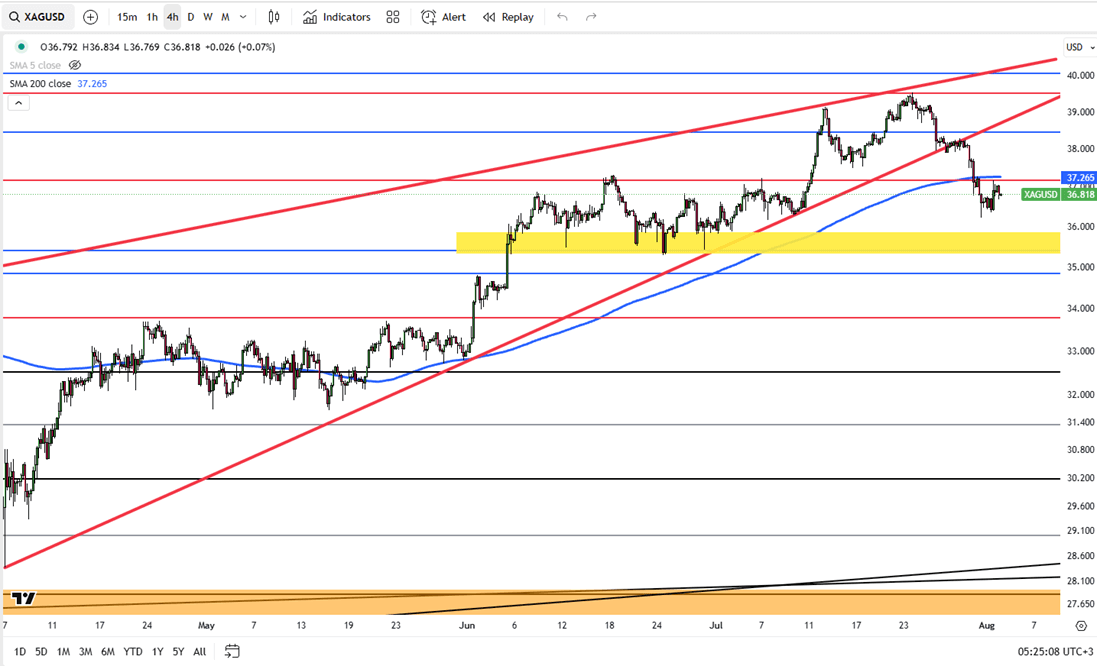 La plata está probando la resistencia en 39,25 dólares, con soporte en 36,50 dólares.