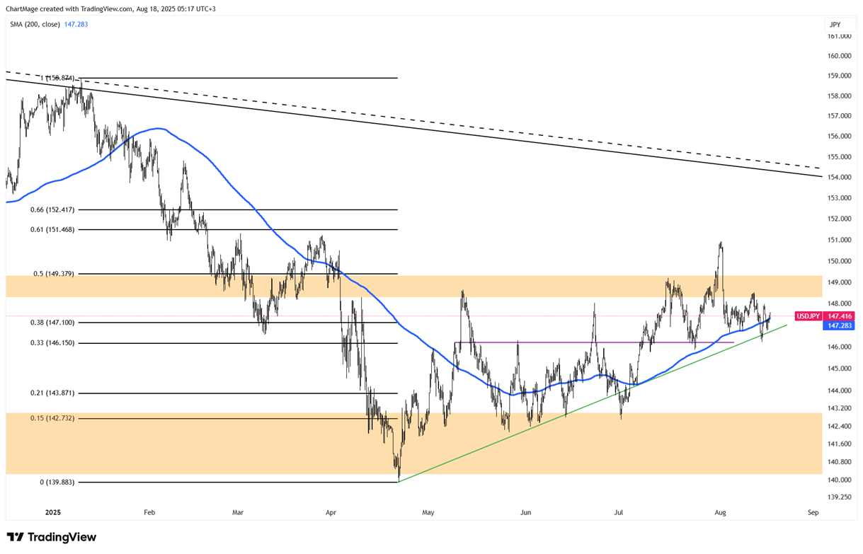 El USD/JPY se encuentra en un nivel crítico tanto desde el punto de vista técnico como fundamental. Los sólidos datos de crecimiento de Japón y los buenos resultados empresariales respaldan al yen, pero la política de tipos bajos del Banco de Japón lo contrarresta. La próxima reunión de la Fed en Jackson Hole será clave para la dirección del dólar.