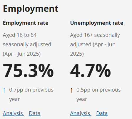 UK wage growth held steady in the three months to June 2025, with regular pay excluding bonuses rising 5 percent year-on-year to £679 per week, according to data from the Office for National Statistics (ONS). The pace matched the previous period and market expectations, remaining at the slowest rate in nearly three years.