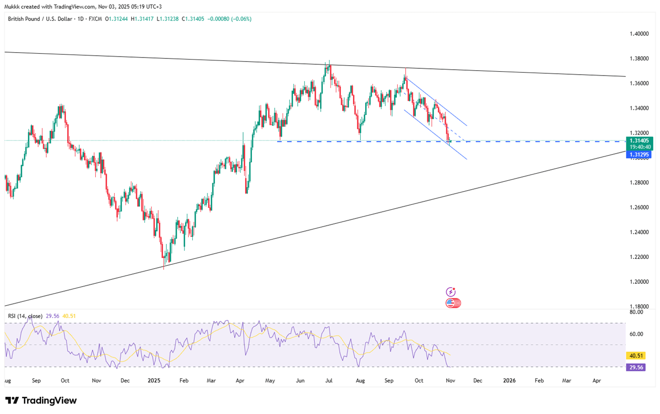 همزمان، افزایش انتظارات برای کاهش نرخ بهره بانک مرکزی انگلستان و نگرانیها دربارهی بودجه ماه نوامبر – که ممکن است رشد اقتصادی را کند کند – فشار بیشتری بر پوند وارد کرد. کیر استارمر، نخستوزیر بریتانیا، احتمال افزایش مالیاتها را رد نکرده و دفتر مسئولیت بودجه بریتانیا نیز ممکن است پیشبینیهای بهرهوری را کاهش دهد؛ مسئلهای که میتواند منجر به کسری ۲۰ میلیارد پوندی شود