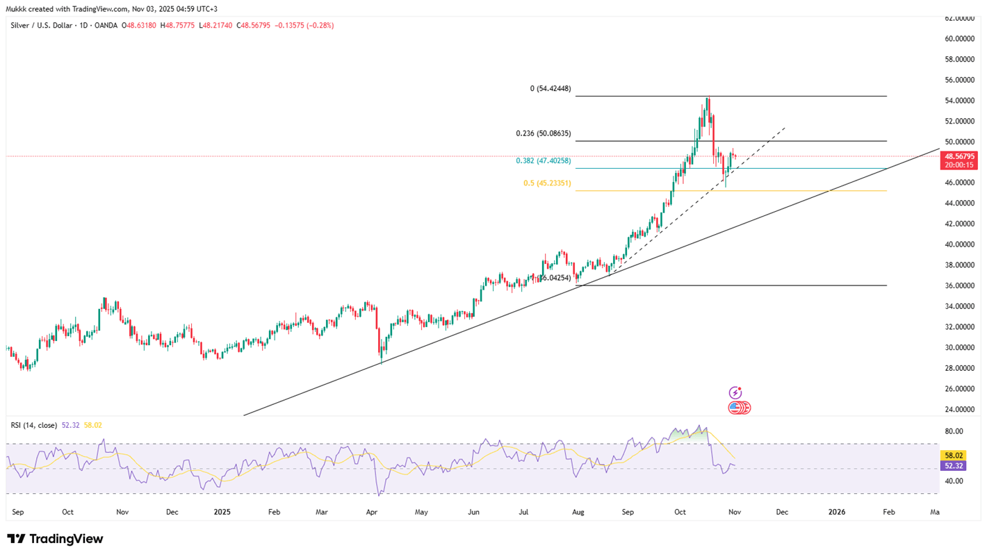 قیمت نقره پس از هفتهای پرنوسان، در حدود ۴۸.۸ دلار در هر اونس ثابت ماند؛ زیرا سرمایهگذاران در حال ارزیابی چشمانداز سیاستهای پولی فدرال رزرو و بهبود روابط تجاری میان آمریکا و چین هستند