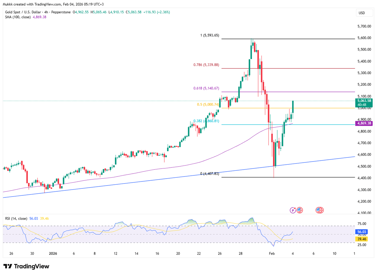 قیمت طلا روز چهارشنبه بار دیگر به بالای سطح ۵٬۰۰۰ دلار صعود کرد و به روند بازیابی خود پس از جهش قدرتمند اوایل هفته ادامه داد. سرمایهگذاران پس از حمله آمریکا به یک پهپاد ایرانی، بار دیگر به سمت داراییهای امن متمایل شدهاند. هرچند گزینه گفتوگوهای دیپلماتیک همچنان مطرح است، اما تداوم تنشهای نظامی از قیمت طلا حمایت میکند. با وجود شهرت انقباضی (هاوکیش) کوین وارش، بازارها همچنان انتظار دارند فدرال رزرو در سال جاری دو نوبت کاهش نرخ بهره انجام دهد. در همین حال، ادامه تعطیلی دولت آمریکا موجب تأخیر در انتشار دادههای رسمی اشتغال شده و این موضوع جذابیت طلا را بهعنوان جایگزینی برای دلار افزایش داده است