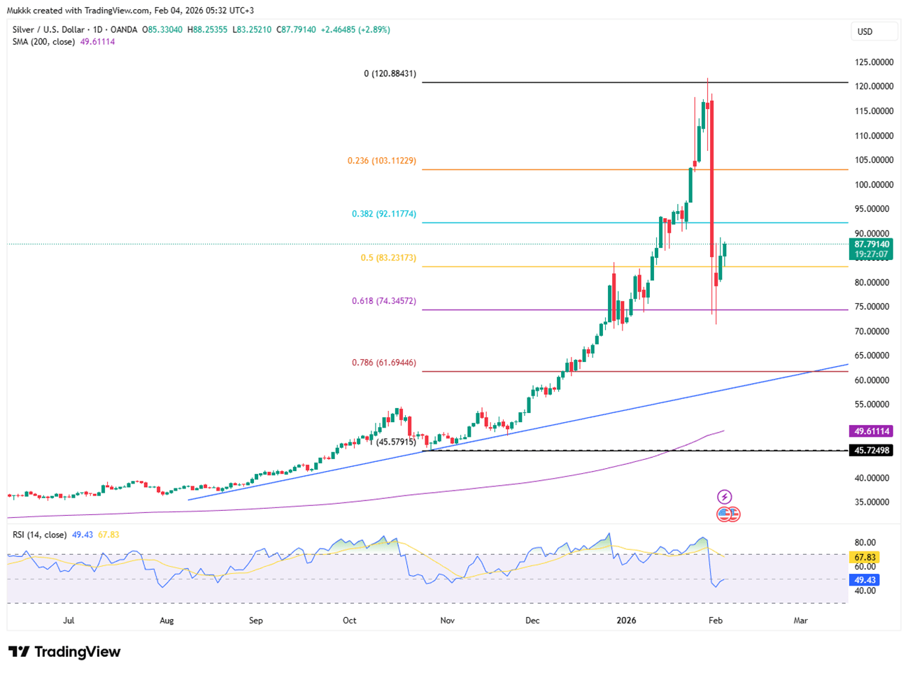قیمت نقره روز چهارشنبه به بالای ۸۶ دلار در هر اونس صعود کرد و پس از سقوط شدید دو روزه که بخش قابلتوجهی از رشدهای قبلی را از بین برده بود، بار دیگر بخشی از افتها را جبران کرد. موج فروش هیجانی ناشی از لیکویید شدنهای اجباری کاهش یافته و همین موضوع به خریداران اجازه داده است در سطوح قیمتی پایینتر به دنبال فرصتهای خرید باشند. افزون بر این، تشدید دوباره تنشها میان آمریکا و ایران، تقاضا برای داراییهای امن را احیا کرده است. فراتر از تحولات کوتاهمدت، نقره همچنان از کمبود ساختاری عرضه در بلندمدت و تقاضای سنگین صنعتی برخوردار است؛ عواملی که به تثبیت قیمت این فلز پس از نوسانات شدید اخیر کمک میکنند