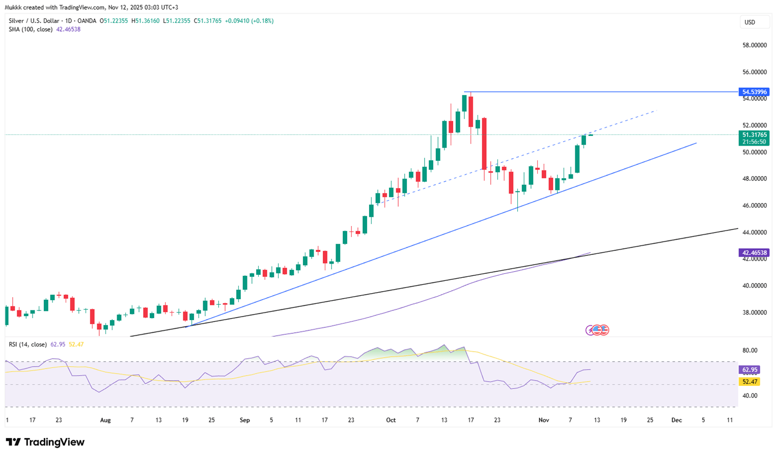 قیمت نقره در معاملات صبح چهارشنبه اروپا تا حدود ۵۱ دلار و ۱۰ سنت کاهش یافت و به روند صعودی پنجروزه خود پایان داد، زیرا افزایش تقاضا برای دلار آمریکا فشار نزولی بر قیمتها وارد کرد. شاخص ارزش دلار در نزدیکی سطح ۹۹.۵۵ تثبیت شد و از خوشبینی نسبت به پایان تعطیلی دولت آمریکا حمایت یافت؛ پس از آنکه سنای این کشور لایحه تأمین مالی موقت را تصویب کرد و قرار است بهزودی در مجلس نمایندگان نیز به رأی گذاشته شود