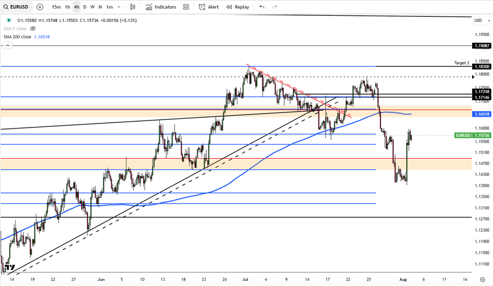 EUR/USD stabil setelah kenaikan minggu lalu, didorong oleh data ketenagakerjaan AS yang lebih lemah, yang memperkuat ekspektasi penurunan suku bunga The Fed pada bulan September. Namun, kenaikan tetap terbatas karena para pedagang menilai implikasi dari kesepakatan perdagangan baru AS-Uni Eropa, yang dikritik oleh para pemimpin Eropa karena menguntungkan kepentingan Amerika dan menimbulkan risiko jangka panjang bagi stabilitas ekonomi Eropa. Tanpa rilis data penting, pasangan mata uang ini kesulitan menembus batas 1,1600.
