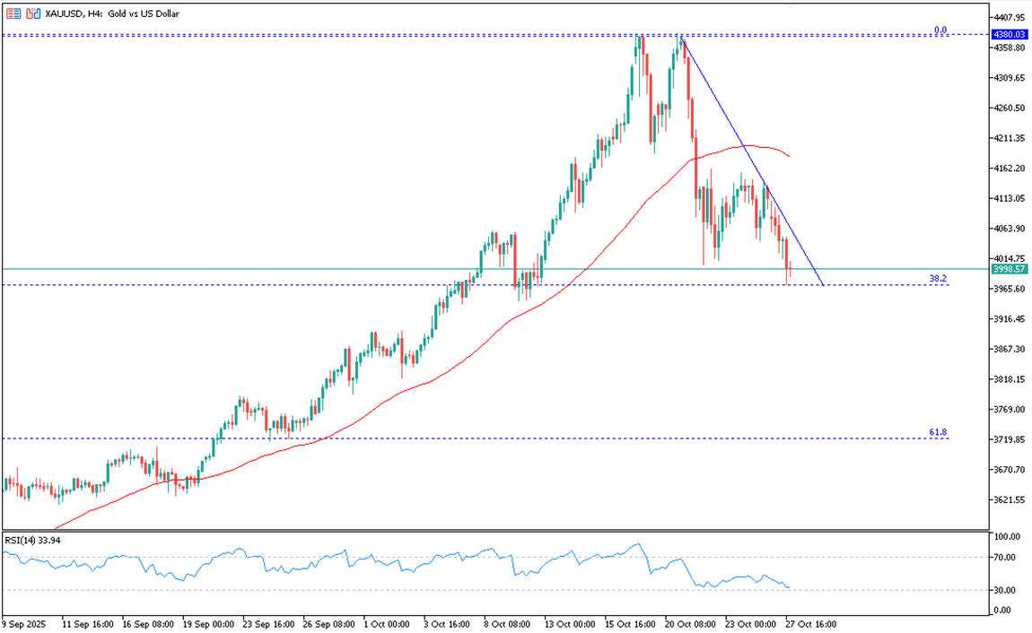 Harga emas sedikit menguat ke kisaran $3.990 per ons pada hari Selasa, tetapi masih mendekati level terendah dalam dua minggu, karena optimisme atas kemajuan perdagangan AS-Tiongkok membebani permintaan aset safe haven. Selama akhir pekan, para pejabat dari kedua negara mengatakan bahwa mereka telah mencapai kesepakatan kerangka kerja mengenai tarif dan isu-isu penting lainnya dalam pembicaraan di Malaysia, yang membuka jalan bagi Presiden Trump dan Xi untuk menyelesaikan kesepakatan tersebut akhir pekan ini di Korea Selatan.