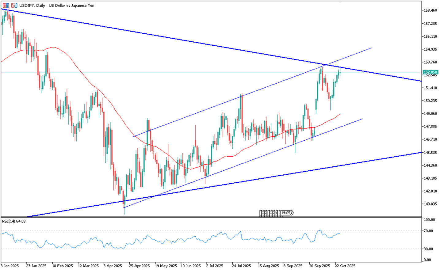 Yen menguat ke level 152 per dolar setelah pulih dari level terendah baru-baru ini. Investor kini menantikan pertemuan Takaichi-Trump mendatang yang berfokus pada perdagangan dan pertahanan. Para pejabat mencatat bahwa pelemahan yen menguntungkan ekspor. Bank of Japan diperkirakan akan mempertahankan suku bunga, tetapi dapat membahas potensi kenaikan seiring meredanya risiko perdagangan.