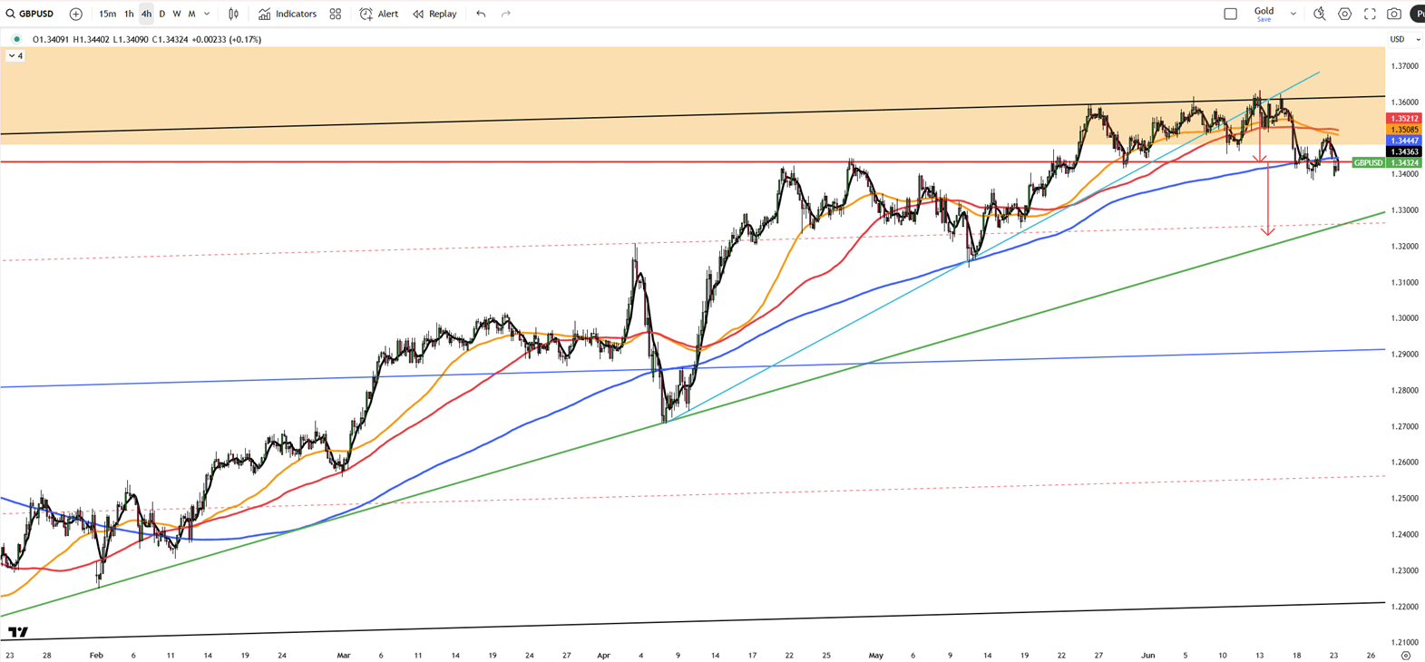 GBP/USD turun ke sekitar 1,3405 selama sesi Asia hari Senin karena aliran safe haven memperkuat dolar AS di tengah meningkatnya ketegangan Timur Tengah. Kekhawatiran akan pembalasan Iran setelah serangan udara AS terhadap tiga lokasi nuklir meningkatkan permintaan untuk Greenback. Trump mengatakan fasilitas Iran "hancur total" dan memperingatkan serangan yang lebih kuat kecuali perdamaian tercapai. Iran berjanji untuk menanggapi, dengan mengatakan "menyimpan semua opsi."