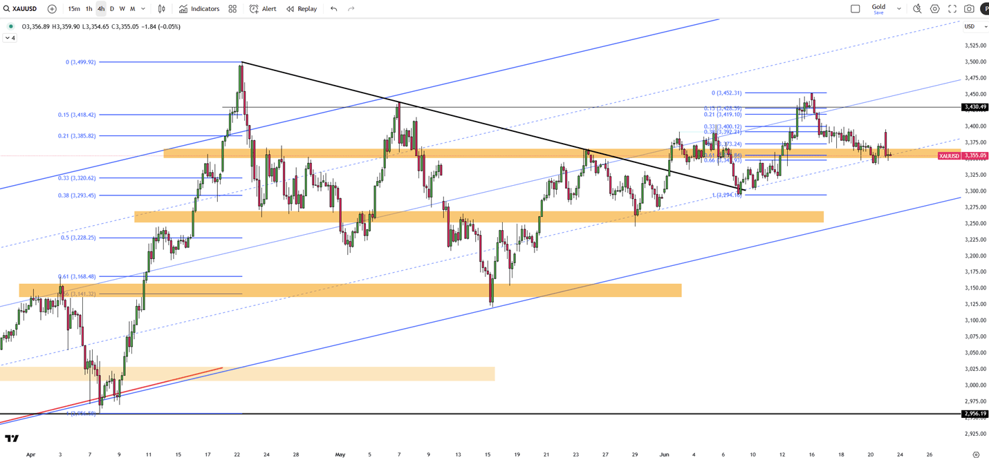 Harga emas diperdagangkan mendekati $3.360 per ons dalam kondisi yang tidak menentu pada hari Senin, karena investor mengamati dengan saksama perkembangan konflik Timur Tengah yang semakin memanas menyusul keterlibatan AS dalam serangan udara Israel terhadap Iran. Selama akhir pekan, pasukan AS menargetkan tiga fasilitas nuklir utama Iran, dengan Presiden Donald Trump memperingatkan akan adanya tindakan lebih lanjut kecuali Teheran menyetujui perdamaian. Pecahnya perang antara Israel dan Iran telah menambah bahan bakar baru pada reli yang telah mendorong harga emas naik hampir 30% tahun ini.