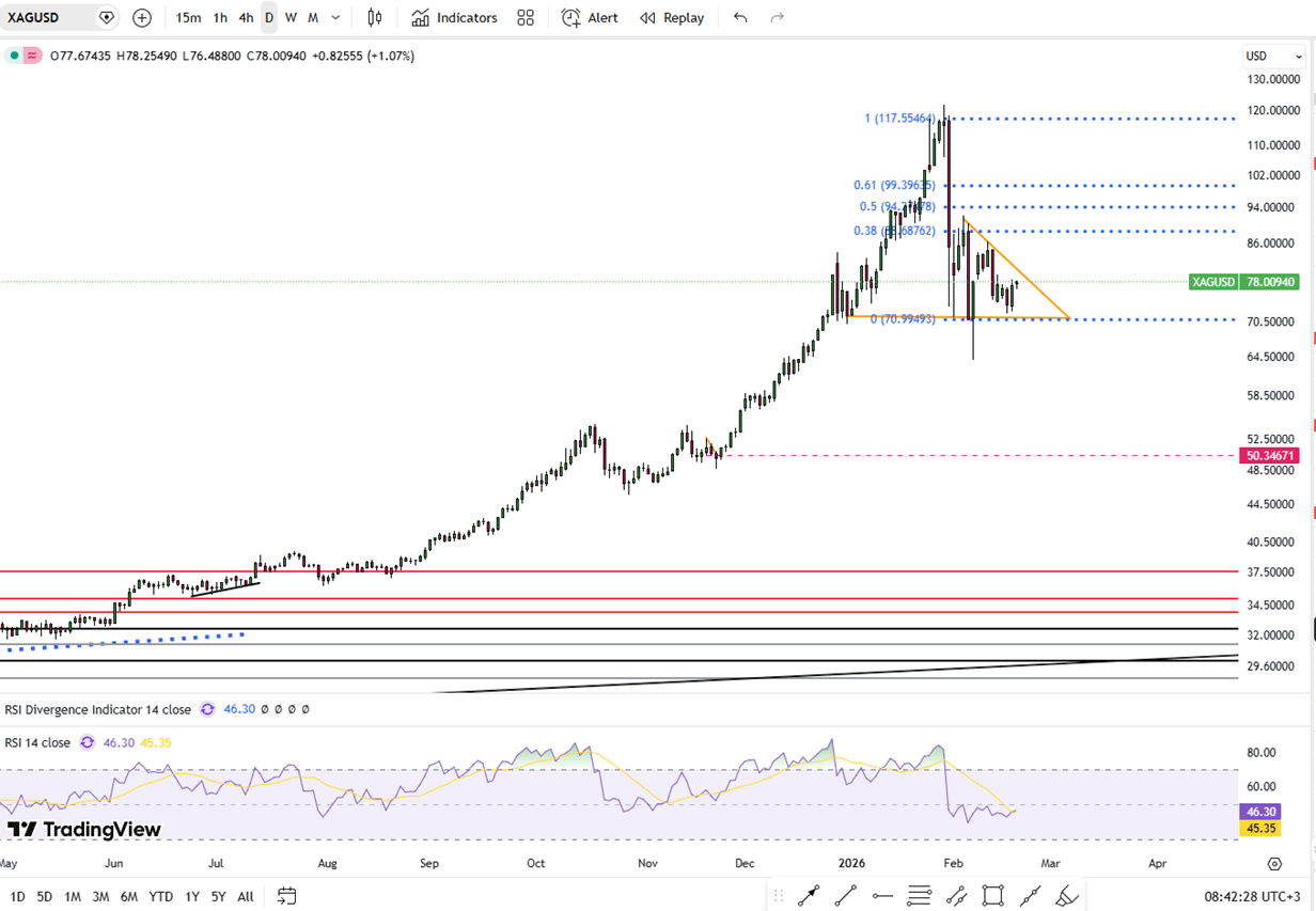 Silver climbed toward $78 on Thursday, extending its recovery alongside the broader metals complex. This advance persisted despite a stronger dollar, which found support from strong U.S. economic data and hawkish signals regarding interest rates from the Federal Reserve.