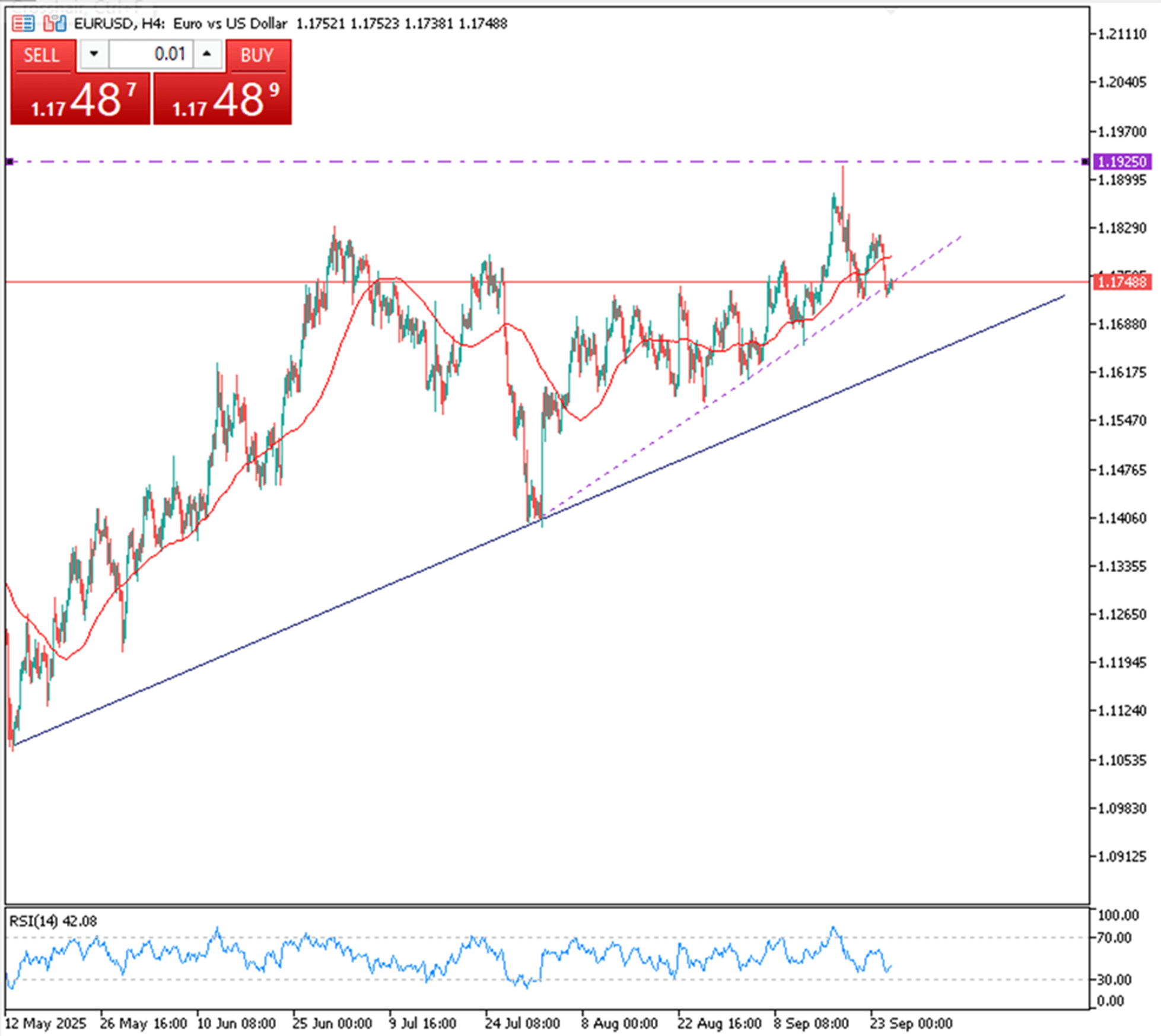 EUR/USD trades near 1.1750 in Thursday’s Asian session, rebounding slightly after a 0.5% drop the day before. The euro stays pressured after Germany’s IFO Business Climate fell to 87.7 in September from 89.0 in August, missing forecasts of 89.3. The pair holds steady as the US Dollar shows hesitation ahead of Fed officials’ comments later today. Focus now shifts to Germany’s GfK Consumer Confidence Survey and Friday’s US PCE Price Index, the Fed’s preferred inflation gauge.