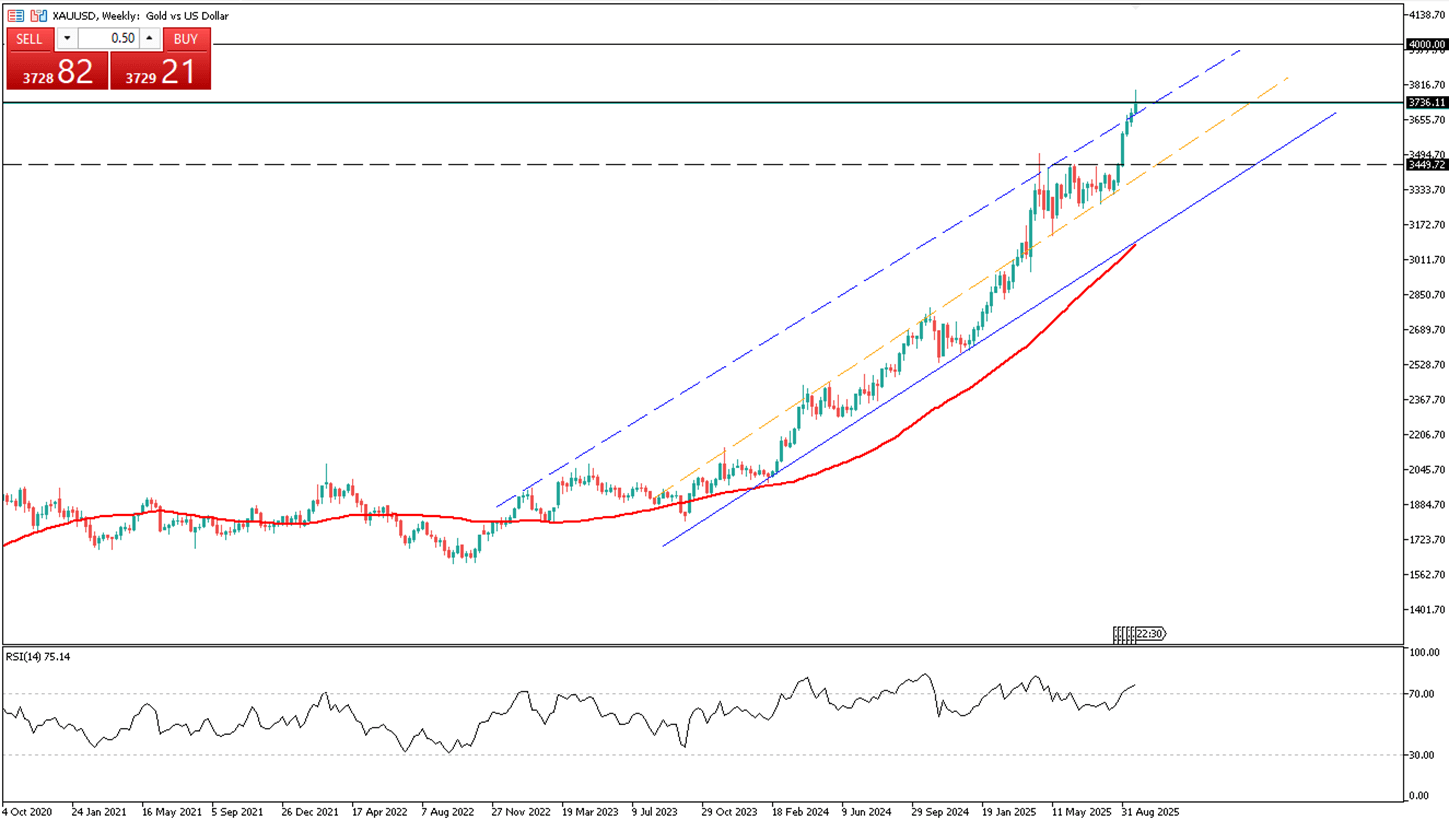 Gold slipped to nearly $3,730 per ounce on Thursday, extending its pullback from record highs as markets assessed the Fed’s outlook. Chair Jerome Powell highlighted the challenge of balancing inflation with a weakening labor market, while officials were split between calling for two more cuts, preferring caution, or pushing faster easing. Meanwhile, US new-home sales surged in August to their highest since early 2022, easing slowdown fears but complicating expectations for further policy easing.