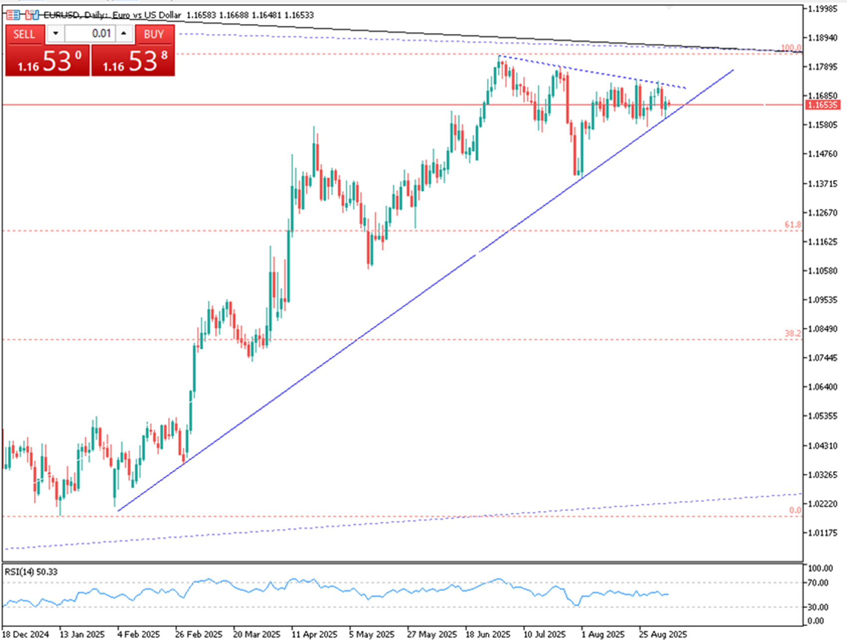 EUR/USD held above $1.1650 on Thursday, trading close to one-month highs as soft US employment figures weighed on the dollar and boosted Fed cut expectations. Eurozone inflation at 2.1% further supported the case for the ECB to keep rates unchanged despite ongoing fiscal challenges.