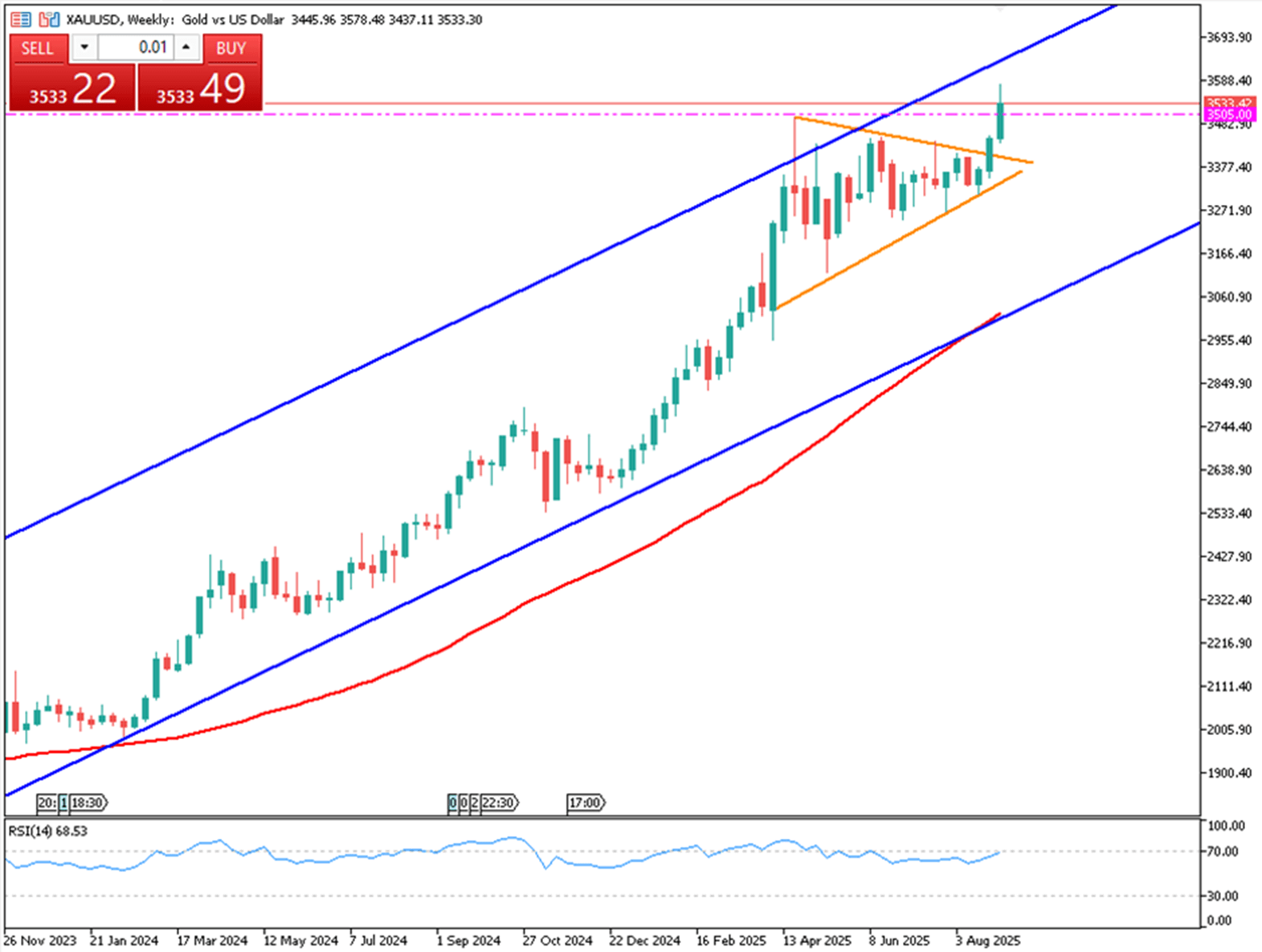 The yen also firmed past 148 as the BoJ stuck with its tightening outlook. Gold steadied near $3,540 after a strong rally, while silver eased 1% to $40.5/oz on profit-taking but remained underpinned by Fed cut bets. Attention now turns to Friday’s payrolls for the next key signal.