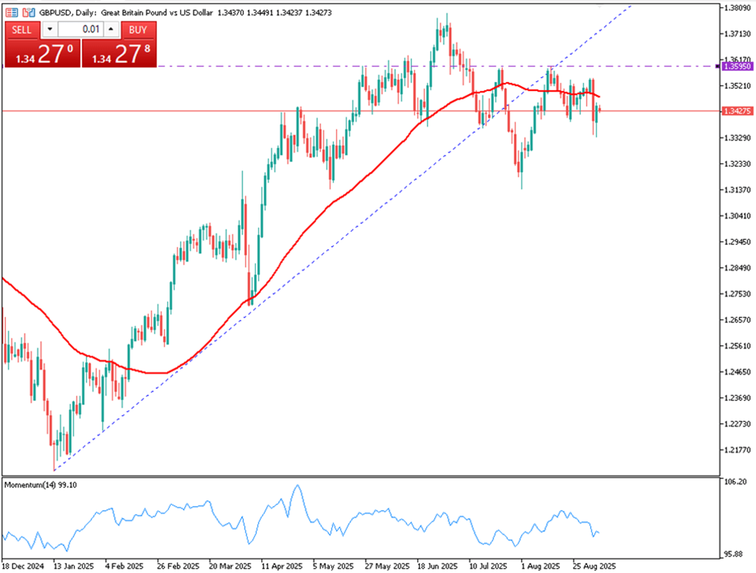 GBP/USD traded above $1.34 as softer US jobs data strengthened Fed easing bets. However, the UK outlook stayed uncertain before the Autumn Budget, with growing fiscal pressures on tax and spending. BoE Governor Bailey highlighted “greater doubt” on the timing of rate cuts, with markets now pricing the next move in April.