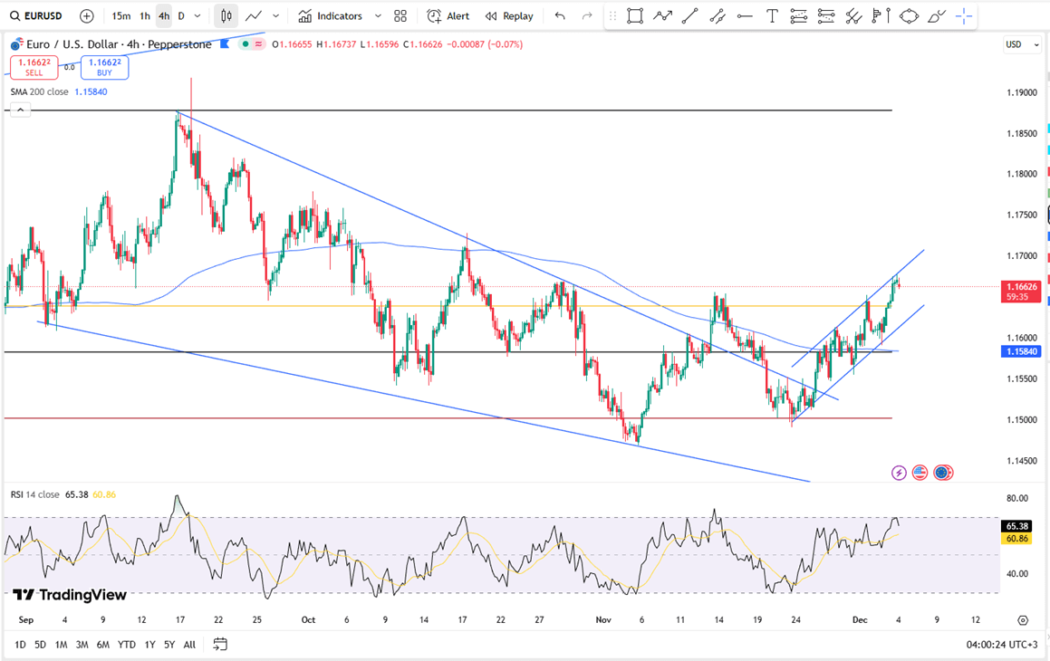 The euro rose above $1.1670 as steady Eurozone inflation supported expectations that the ECB will hold rates through 2026, while the pound climbed toward $1.33 on stronger UK services data and a softer US dollar.