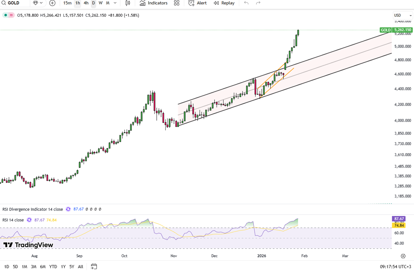Gold prices hit a historic high above $5,200 on Wednesday as a tumbling dollar sparked a rush for safe haven assets. The rally accelerated after President Trump dismissed concerns over the greenback's four year low, expressing comfort with a weaker currency to aid exports. This nonchalant stance, combined with heightened trade friction and questions regarding the Federal Reserve’s independence, has driven gold up 18% this month alone.