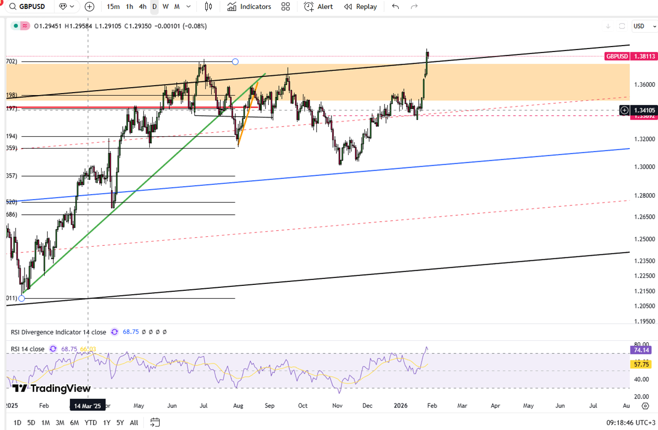 The British pound rose on Monday, testing 1.3850 for the first time since September. While the Trump administration threatened European nations with new tariffs over the Greenland dispute, markets remained optimistic that the rhetoric would de-escalate. This resilience helped the pound sustain its momentum despite lingering geopolitical uncertainty.