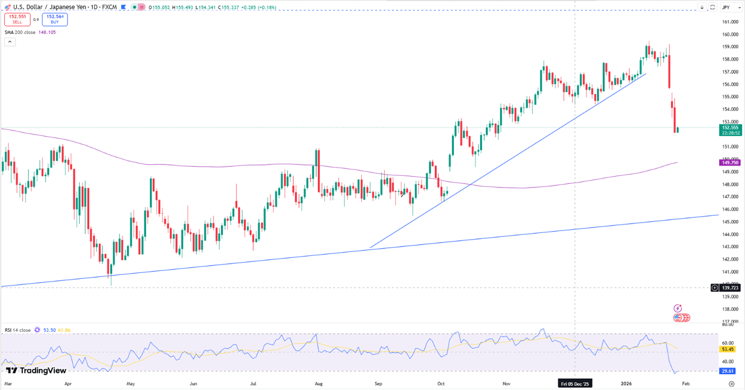 The yen held firm on speculation of coordinated U.S.–Japan intervention, while gold and silver pushed to fresh record levels amid trade friction, policy uncertainty, and strong safe-haven demand. Sterling also advanced toward multi-month highs as risk appetite remained resilient.