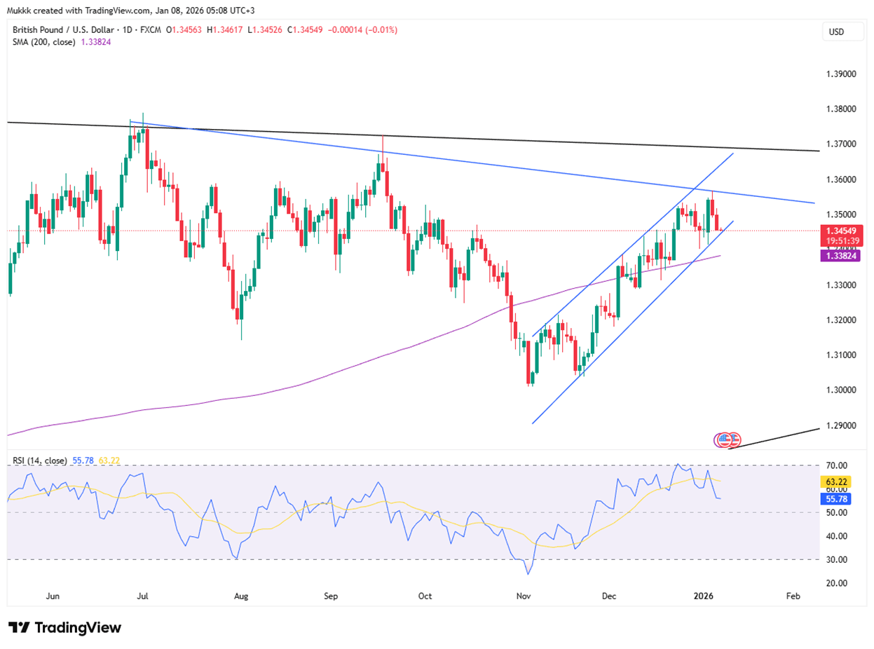 From a technical view, support stands near 1.3400, with resistance around 1.3500.