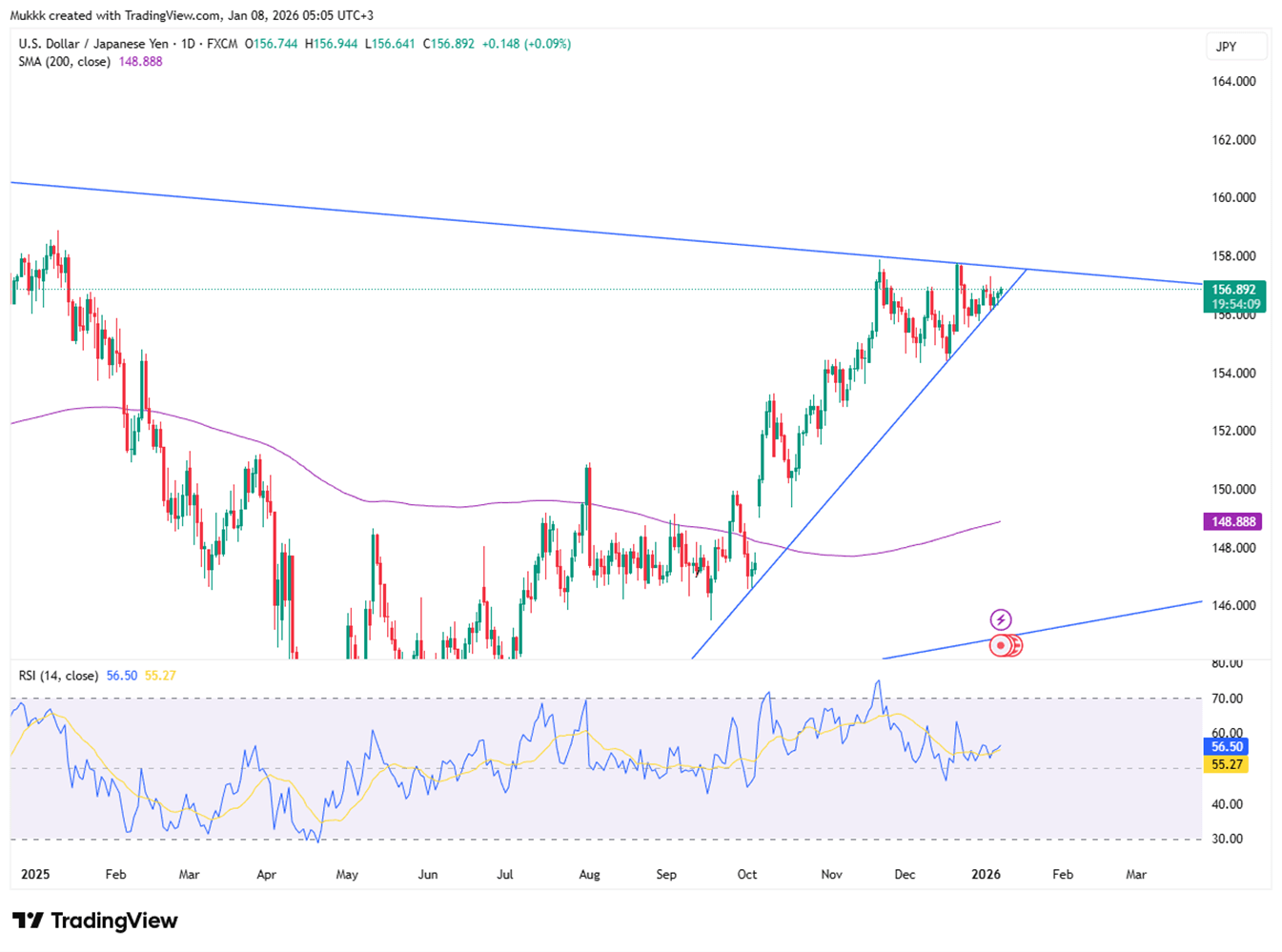 Technically, resistance stands near 157.30, while support is firm at 156.30.